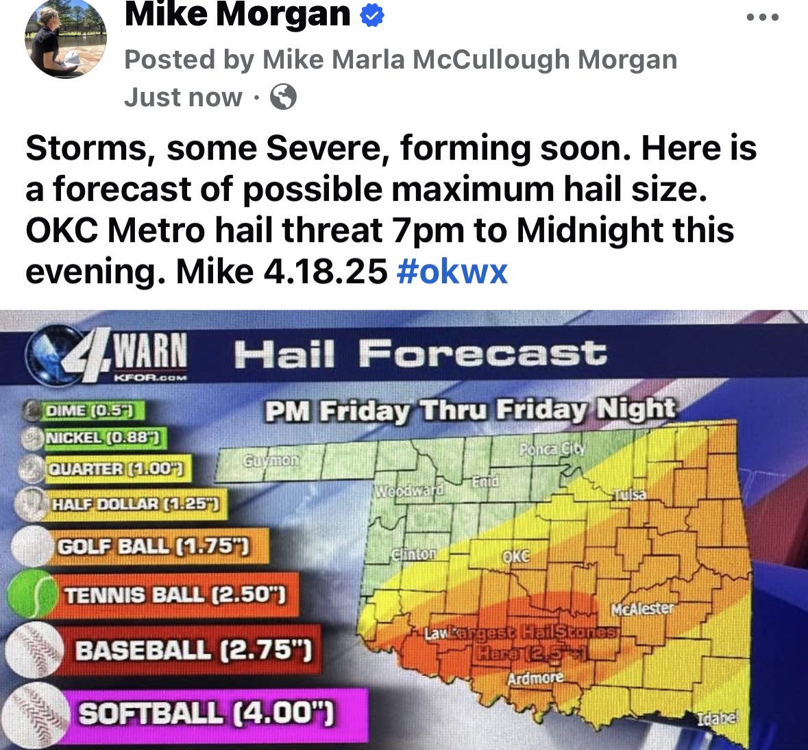 Hail is biggest threat in OKC it seems
