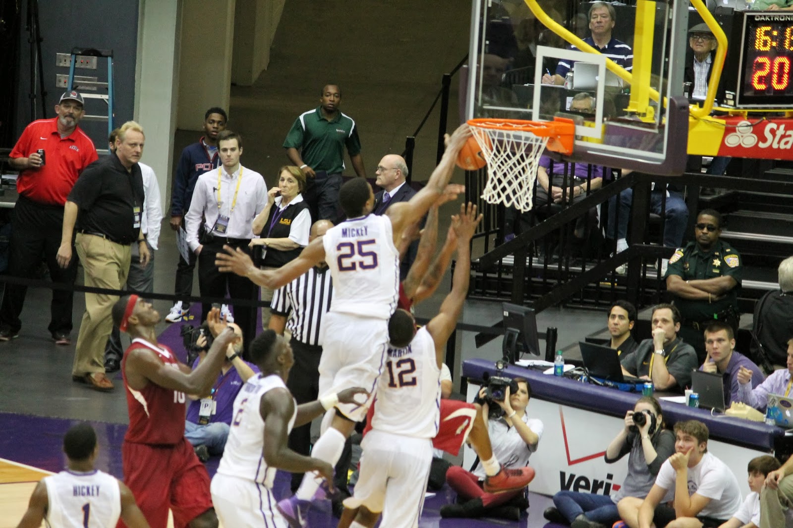 LSU's Mickey, Martin and O'Bryant scored 60 of the Tigers 88 points to help push the Tigers to 5-3 in the SEC after their victory over Arkansas. Andre Stringer scored 10 points off the bench for the Tigers and Anthony Hickey led the team with 6 assists. LSU was also able to hold Arkansas to 74 points, 8 points less than their season average using a very active 2-3 zone.