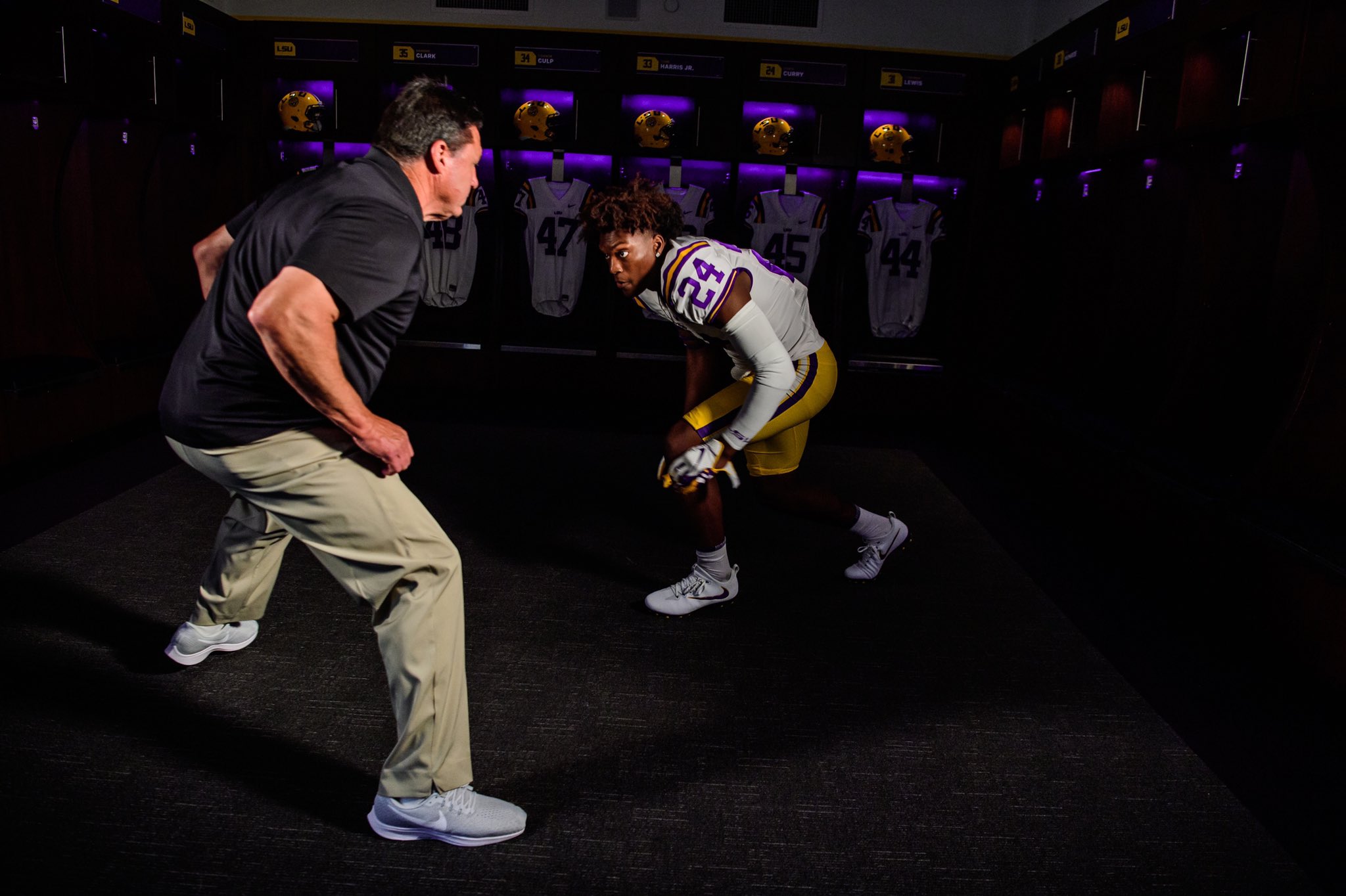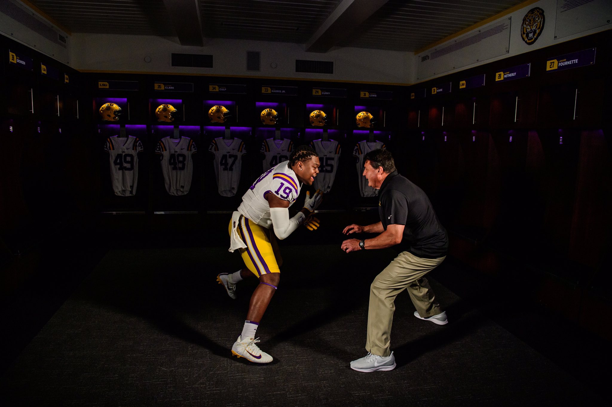 These Pictures Of Coach O Squaring Up With Recruits In LSU's Locker Room Are Awesome