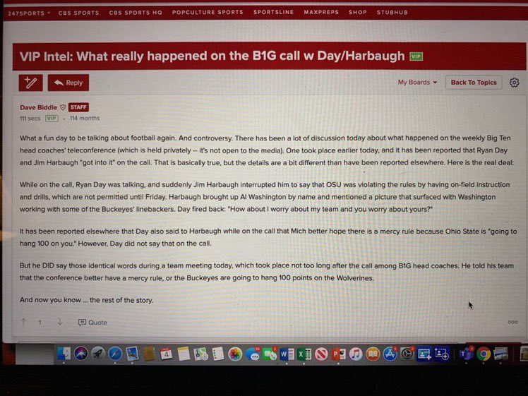 Per the report, Harbaugh interrupted Day, raising an issue with on-field instruction that was reportedly happening at Ohio State. He also brought up a photo that showed position coach Al Washington working with his linebackers before he’s allowed to do so. “How about I worry about my team and you worry about yours?” Ryan Day reportedly responded on the call.
