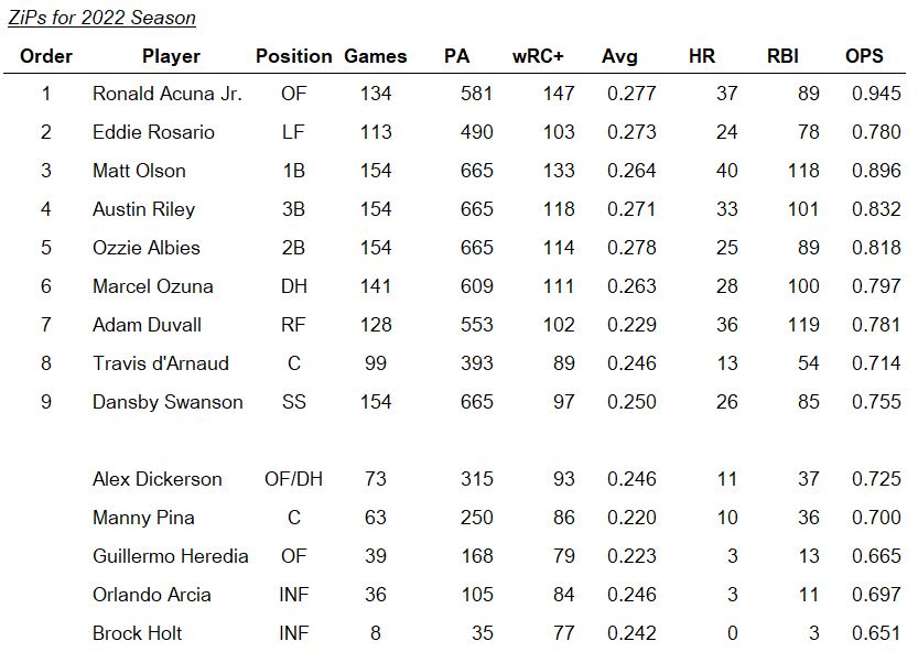 That's definitely a championship contender. Unfortunately the Mets and Phillies spent a ton of money on free agents, and the Braves will once again be picked to finish 3rd in the division and miss the playoffs.