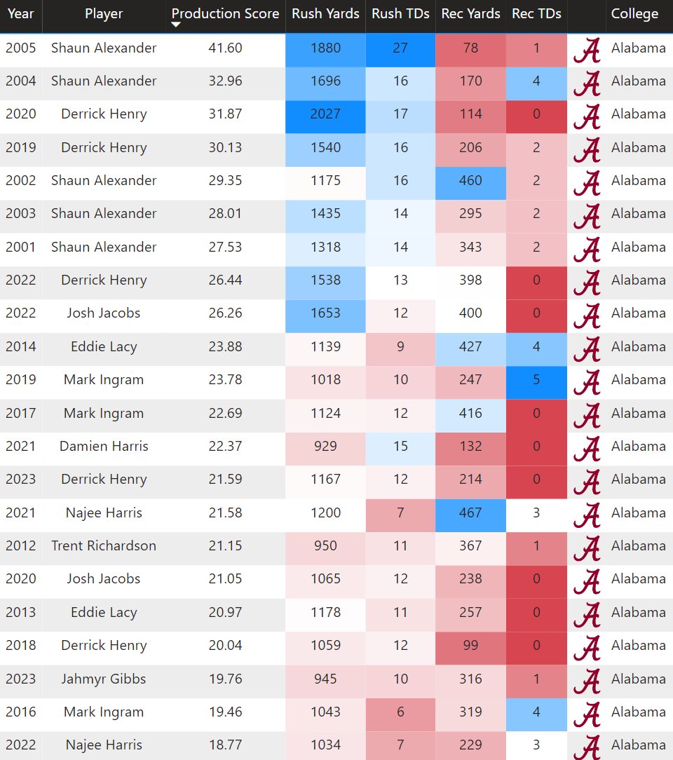 04, 05 Shaun Alexander - best years for a Bama RB in the NFL since 2000