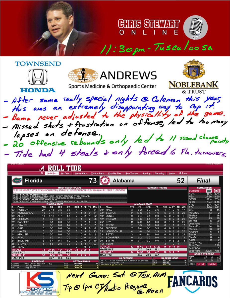 I’ve never seen a collapse like this in all of my years of following Alabama athlwtics. We went from a lock, ranked 15th in Andy Katz’s power rankings to missing the tournament. Someone has to be fired, even if it’s not Johnson.