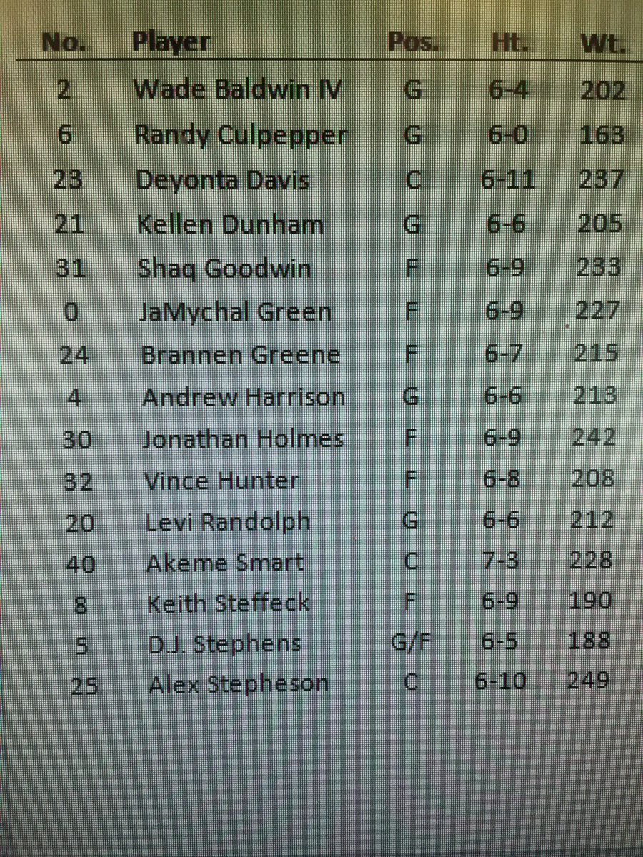 Pelphrey is with him watching Petty. Pettway is watching Alex Reese, Jamal Johnson, and Garrison Brooks.
