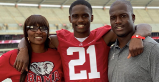 Alabama CB commit Latrell McCutchin alongside his mother and DB coach Karl Scott
