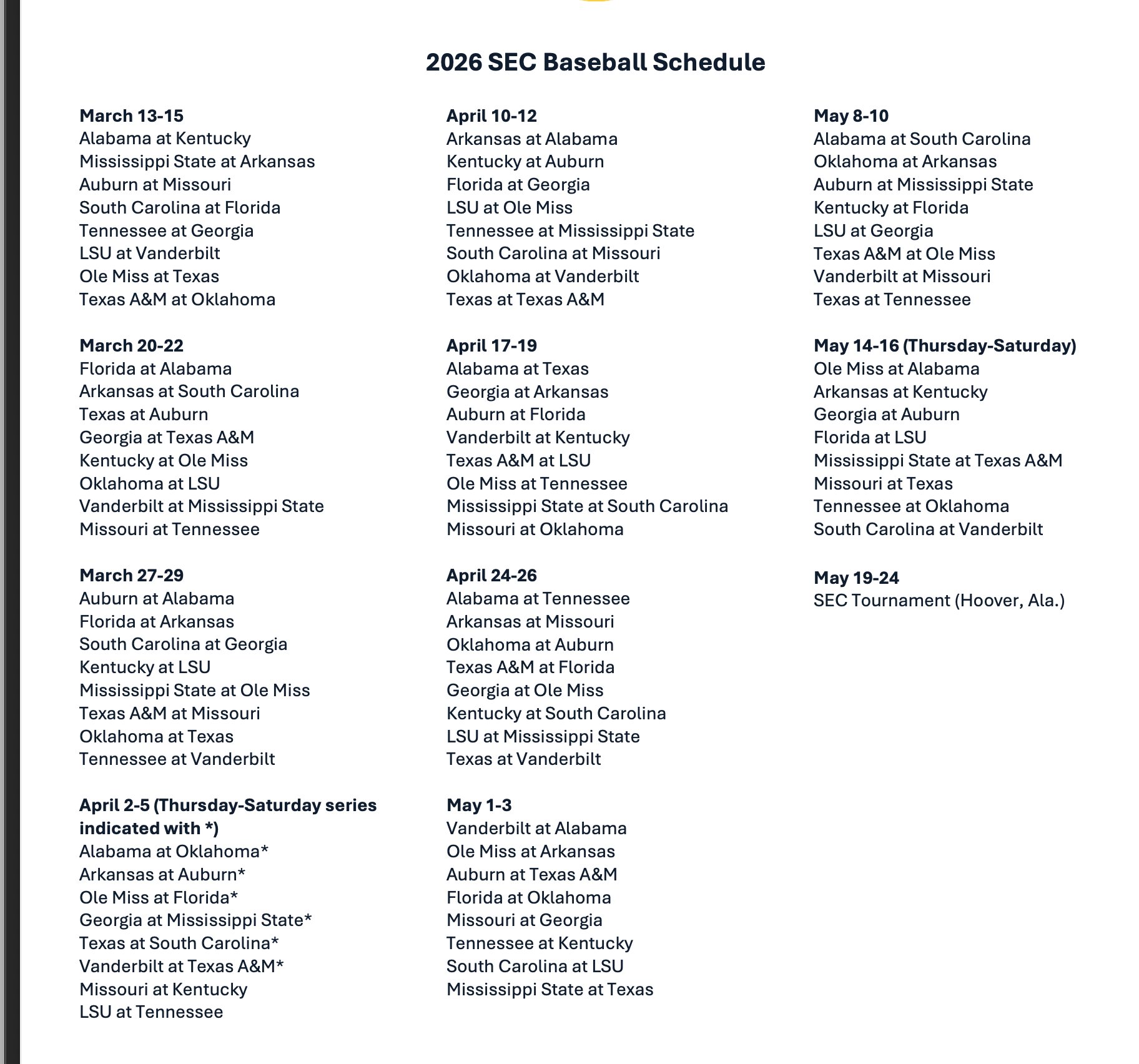 Ole Miss (May 14-16)