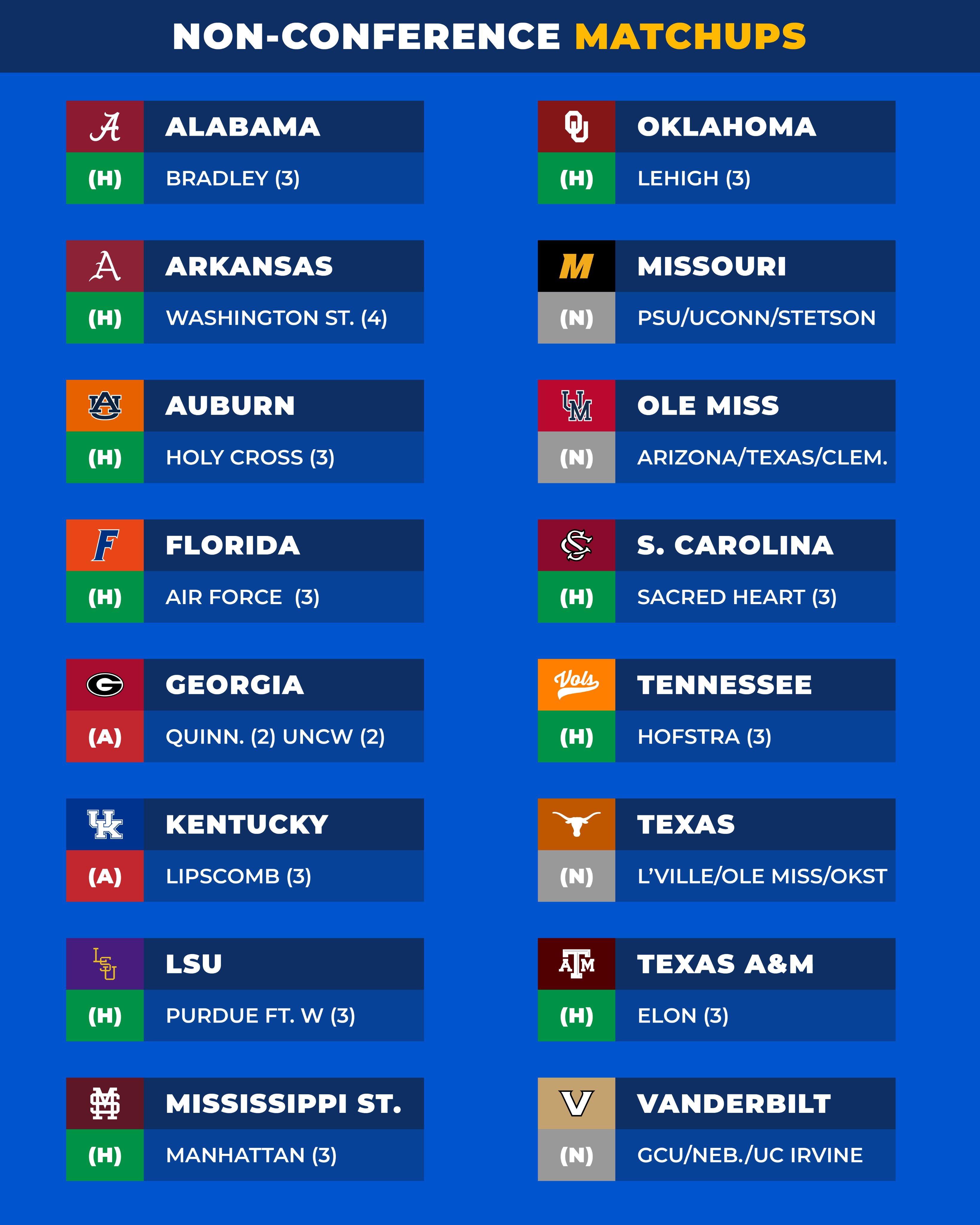 * Sunday, Feb. 16 vs. Bradley – 1 p.m. CT – SEC Network+