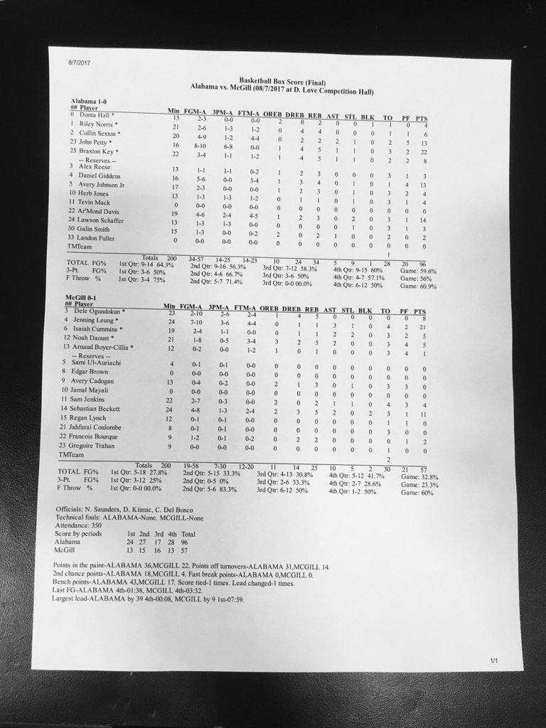 re: Alabama Basketball @McGill Game Thread: 96-57 Bama Wins