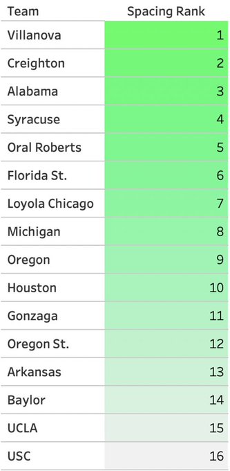 Which teams create the most spacing/gravity on the floor of the sweet 16?