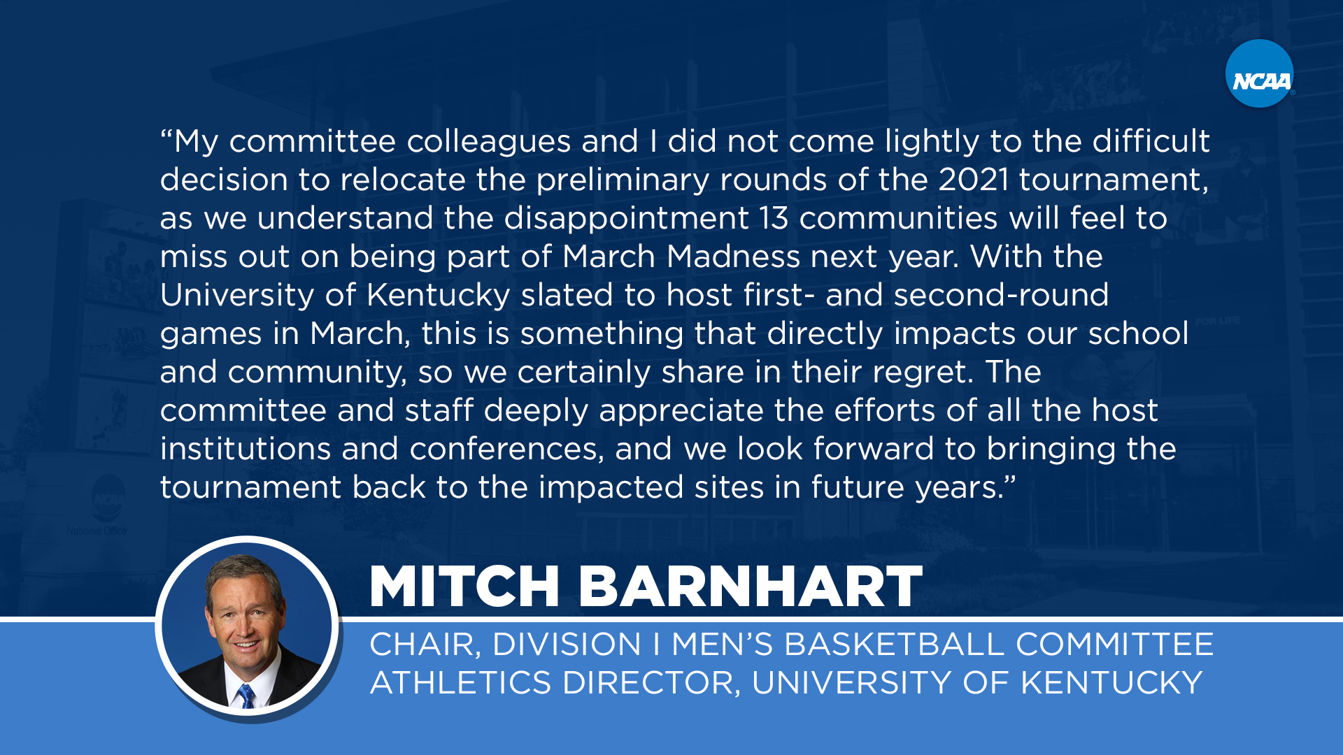 “Through these discussions, it became apparent to the committee that conducting the championship at 13 preliminary round sites spread throughout the country would be very difficult to execute in the current pandemic environment.”