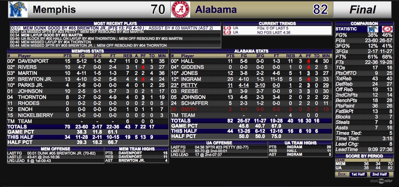 re: Alabama Basketball vs Memphis Game Thread 82-70 TIDE WINS