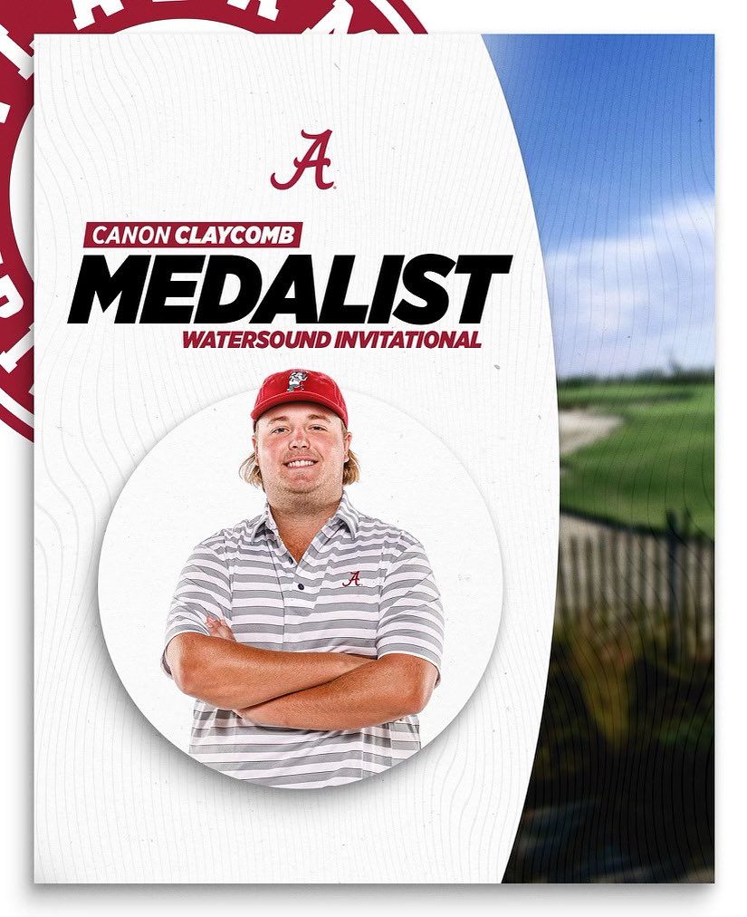 IT’S OFFICIAL! Canon Claycomb claims his first collegiate medalist honor with a career-best score of 14-under-par 202 at the Watersound Invitational! The Crimson Tide finish as tournament runner-ups