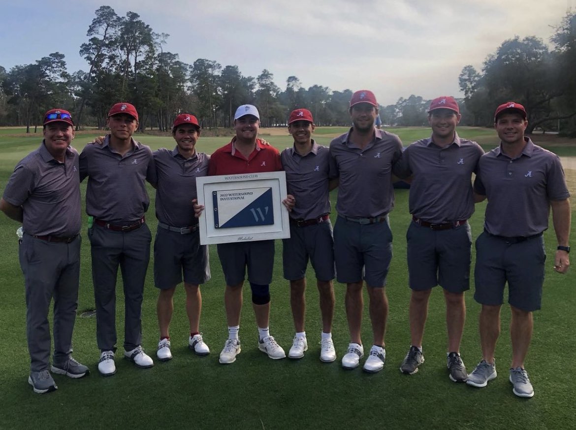 The Alabama men's golf team will open the 2022 Spring season at the Watersound Invitational, hosted by Florida State. The three-day, 54-hole tournament will tee off Sunday morning and be played across three days on the par 72, 7,202-yard Shark's Tooth Golf Course in Panama City Beach, Fla.