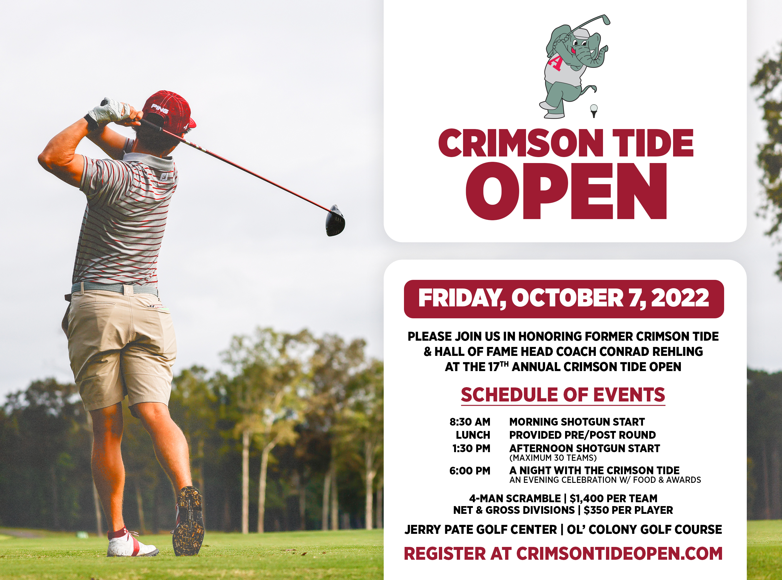 A few spots have come available in this Friday’s Crimson Tide Open. Morning and afternoon tee times are available!