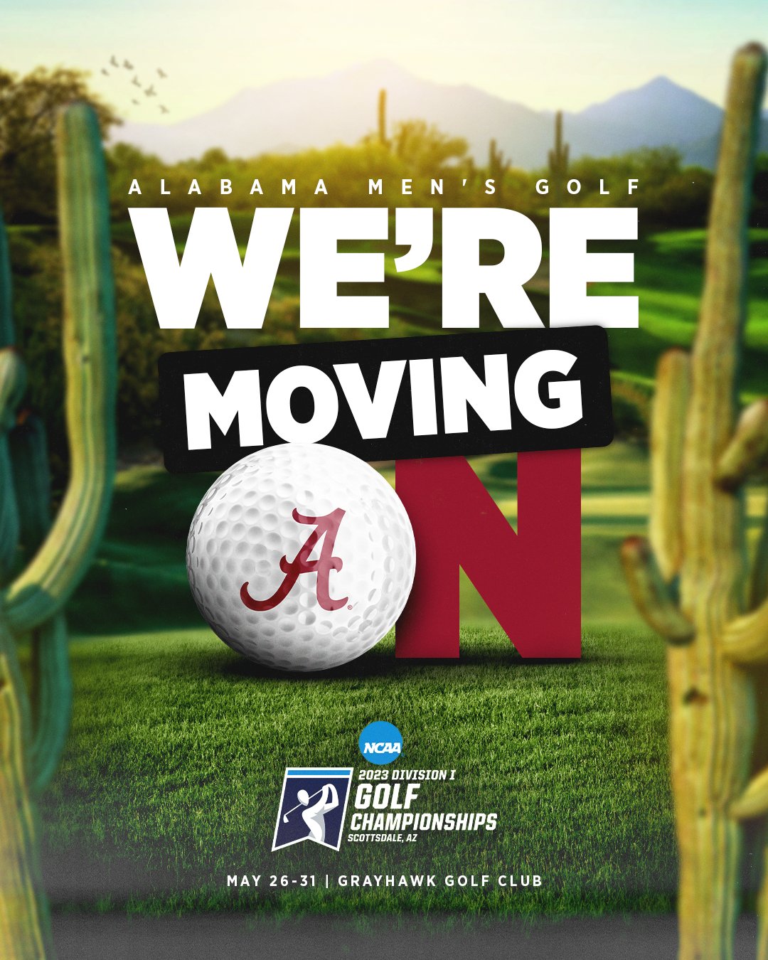 As a result, the Crimson Tide will advance to the NCAA Division I Men's Golf Championships hosted by Arizona State University in Scottsdale, Ariz. at the Grayhawk Golf Club, from May 26-31.