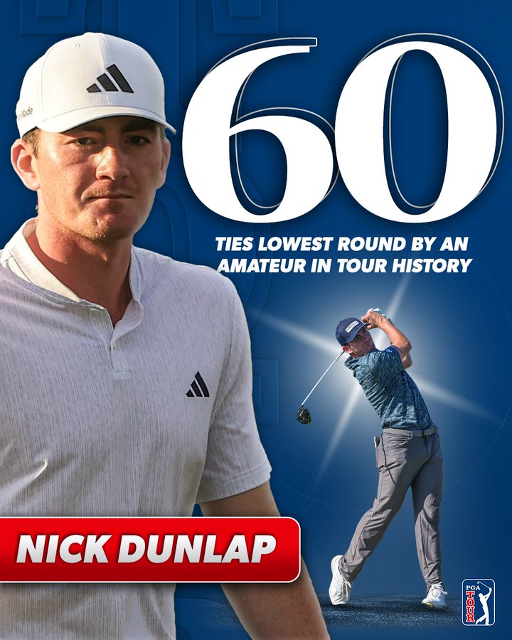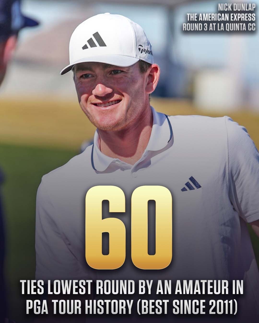 @PGATOURU's Nick Dunlap becomes just the second amateur to shoot a 60 in a PGA TOUR event.