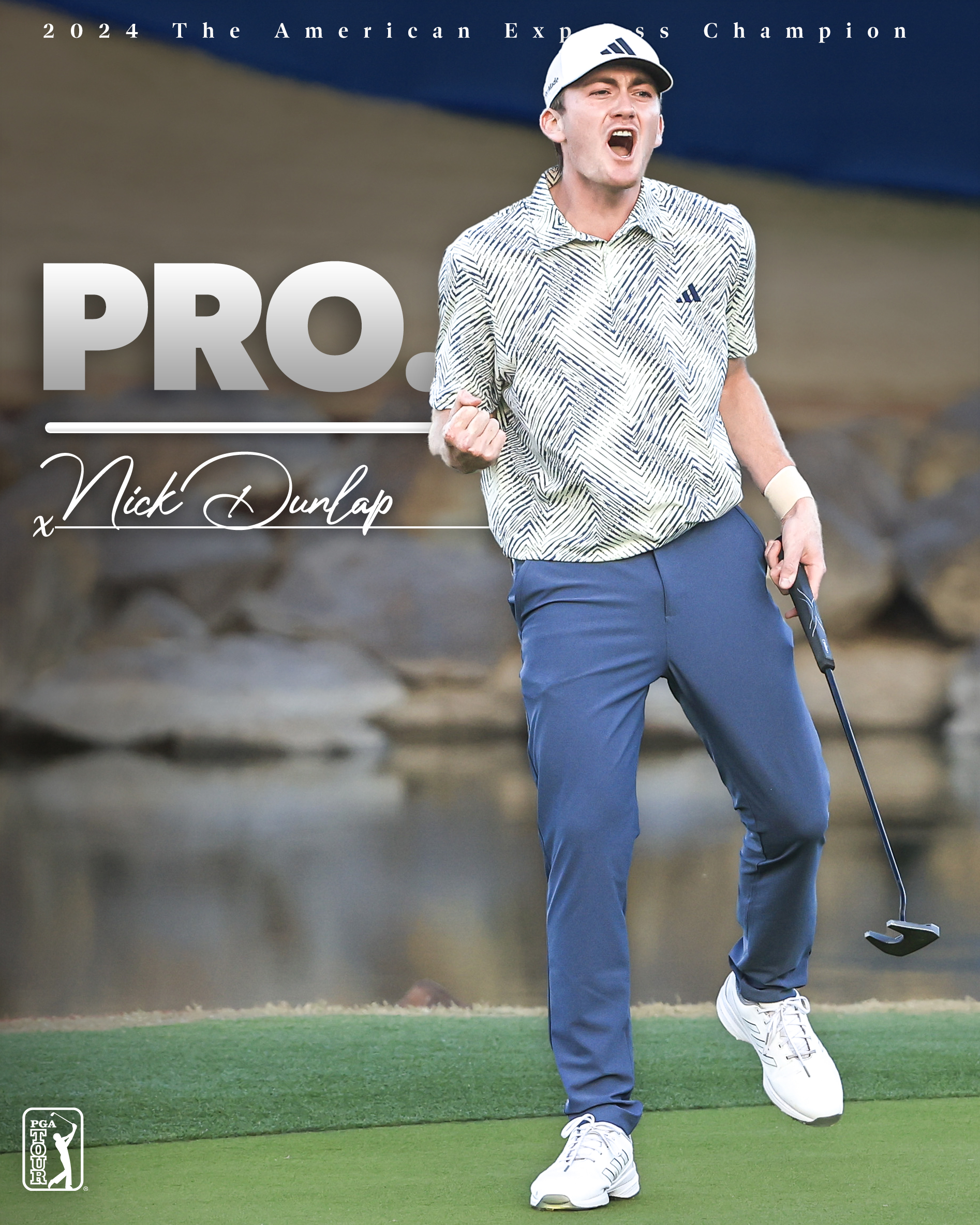 Dunlap made the decision less than a week after winning The American Express tournament (Jan. 21). In doing so, he became the first player to win the U.S. Junior Amateur, U.S. Amateur and a PGA TOUR event while still an amateur and is the second-youngest TOUR winner since World War II (behind only Jordan Spieth).