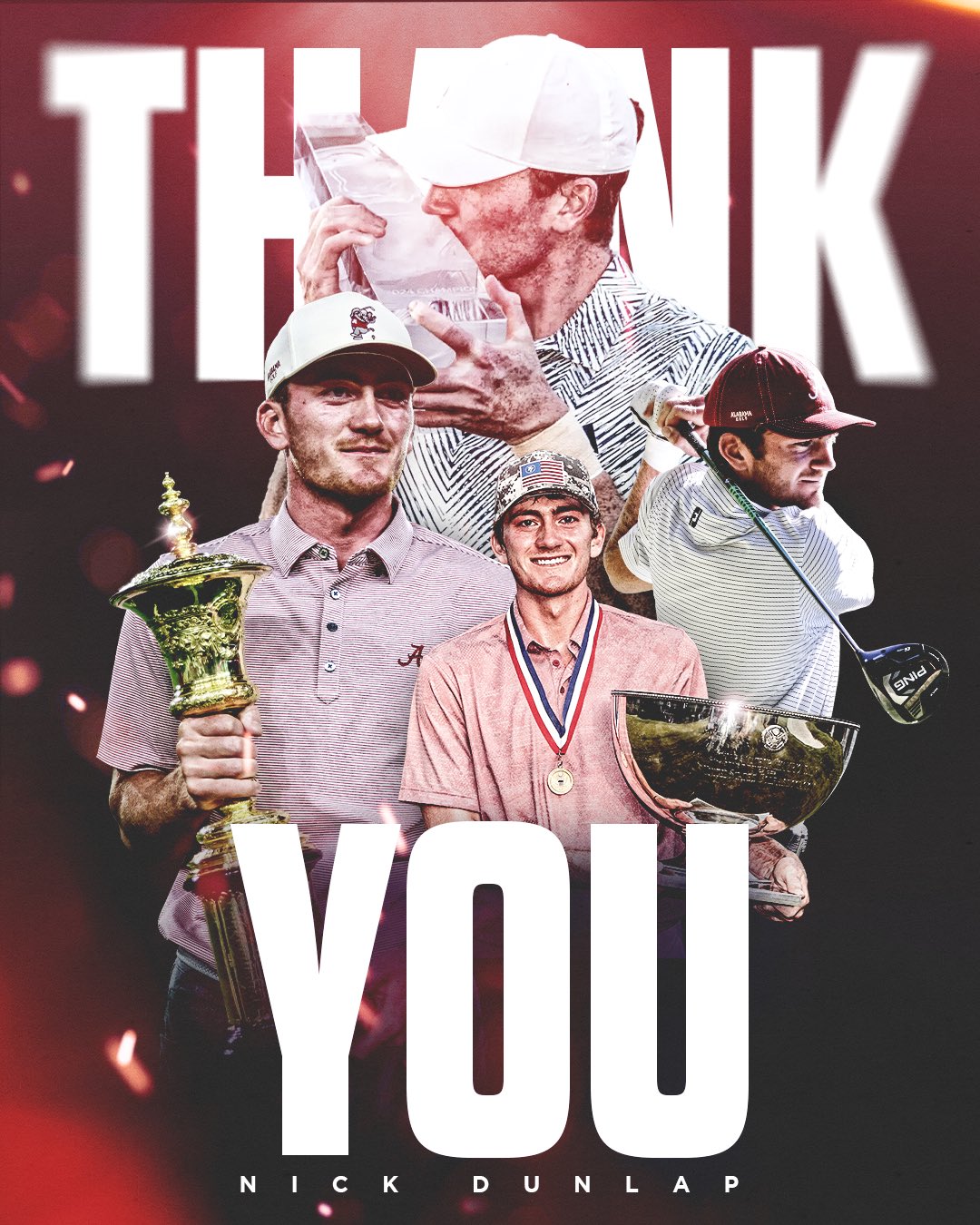 On an emotional day, Alabama golfer Nick Dunlap didn't shy away from giving the school its flowers.