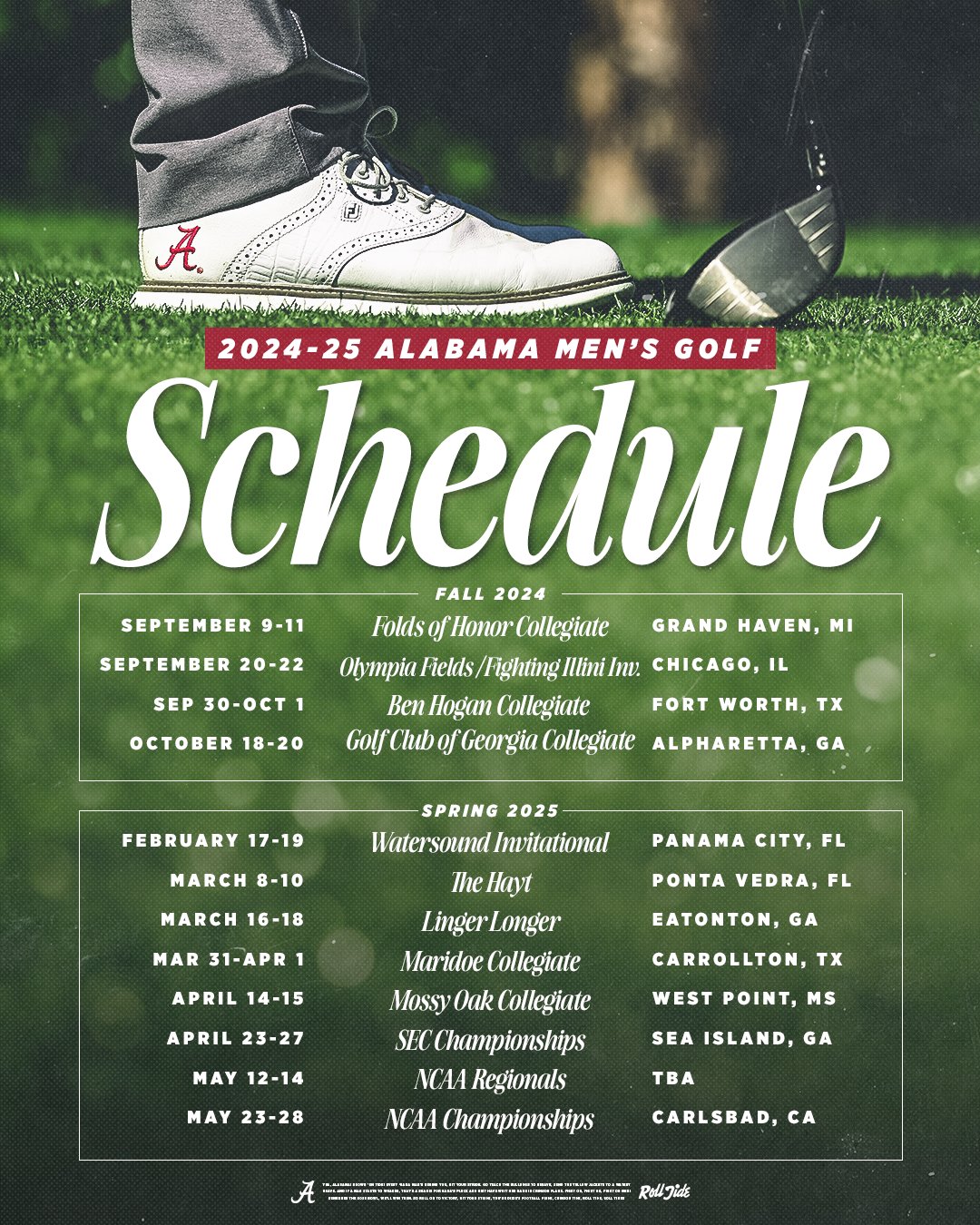 The Tide will tee of second round action at the OFCC/Fighting Illini Invitation, which is being contested at the par 70, 7,353-yard Olympia Fields Country Club, at 9 a.m. CT off hole No. 10 paired alongside Baylor and Michigan.