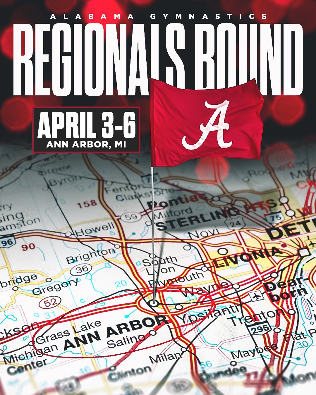 The No. 8 Alabama gymnastics team will travel to Ann Arbor, Mich., for the 2024 NCAA Regional Championships, the NCAA announced Monday during the Gymnastics Selection Show.