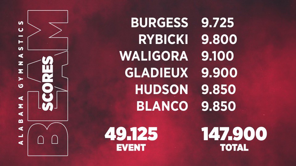Ladies with a W and a 197+ but still searching for consistency across all events. Luisa was a last minute scratch on floor exercise (on Senior Night) - hope it’s not as ominous as it seems.
