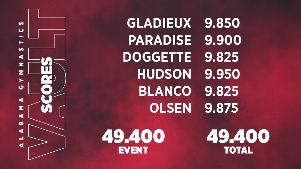 The meet is Alabama's senior night, and fifth-year seniors Shallon Olsen and Sania Mitchell will be honored alongside UA's senior class of Luisa Blanco, Ella Burgess, Makarri Doggette and Mati Waligora.