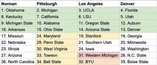 Correct - anything can happen but Bama is not one of the top 2 teams in the Pittsburgh region in that projection