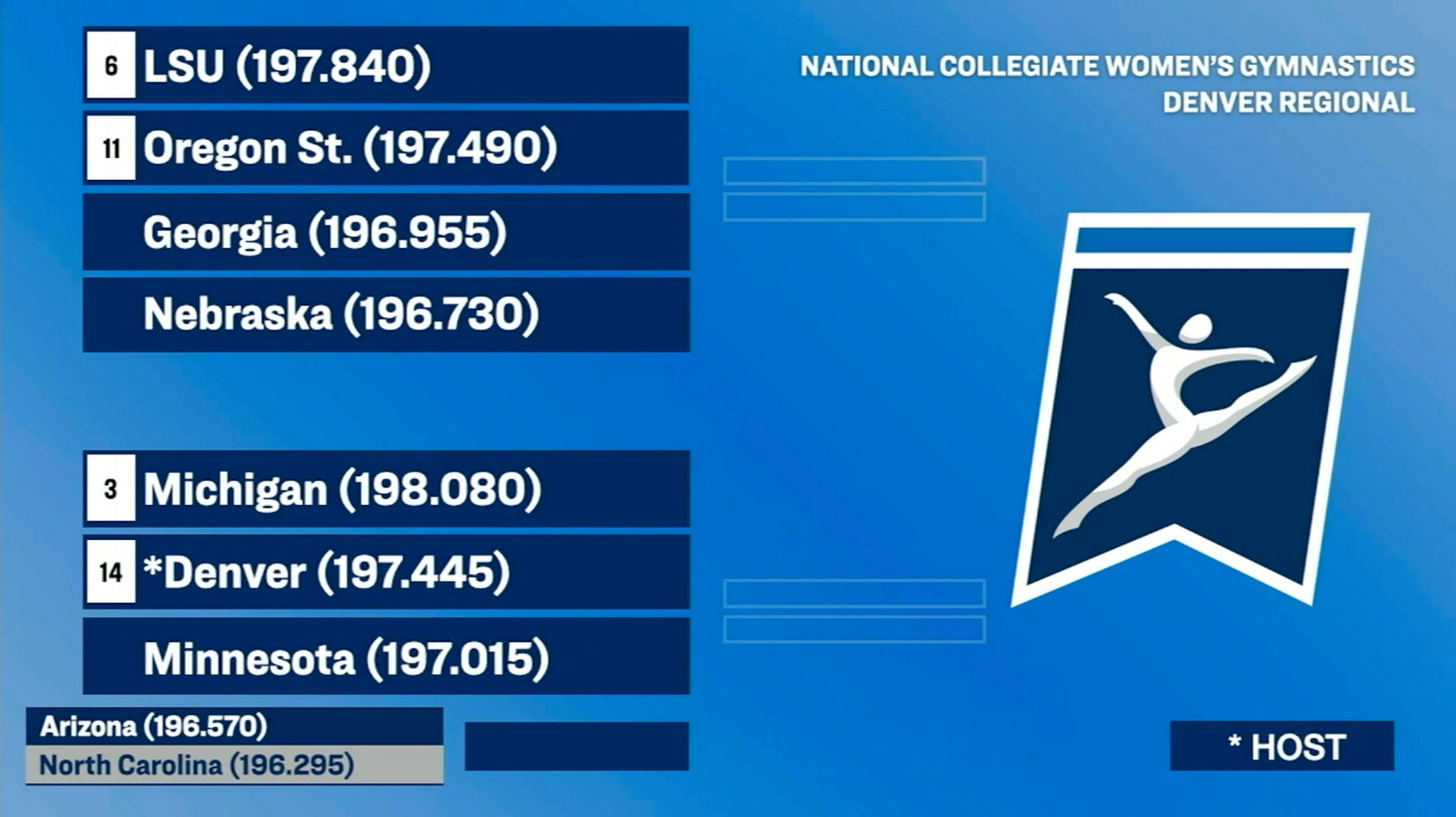 The top two teams from each of Thursday's semifinals will advance to the NCAA Regional Finals on Saturday, April 1, with the top two teams advancing to the NCAA National Championships.