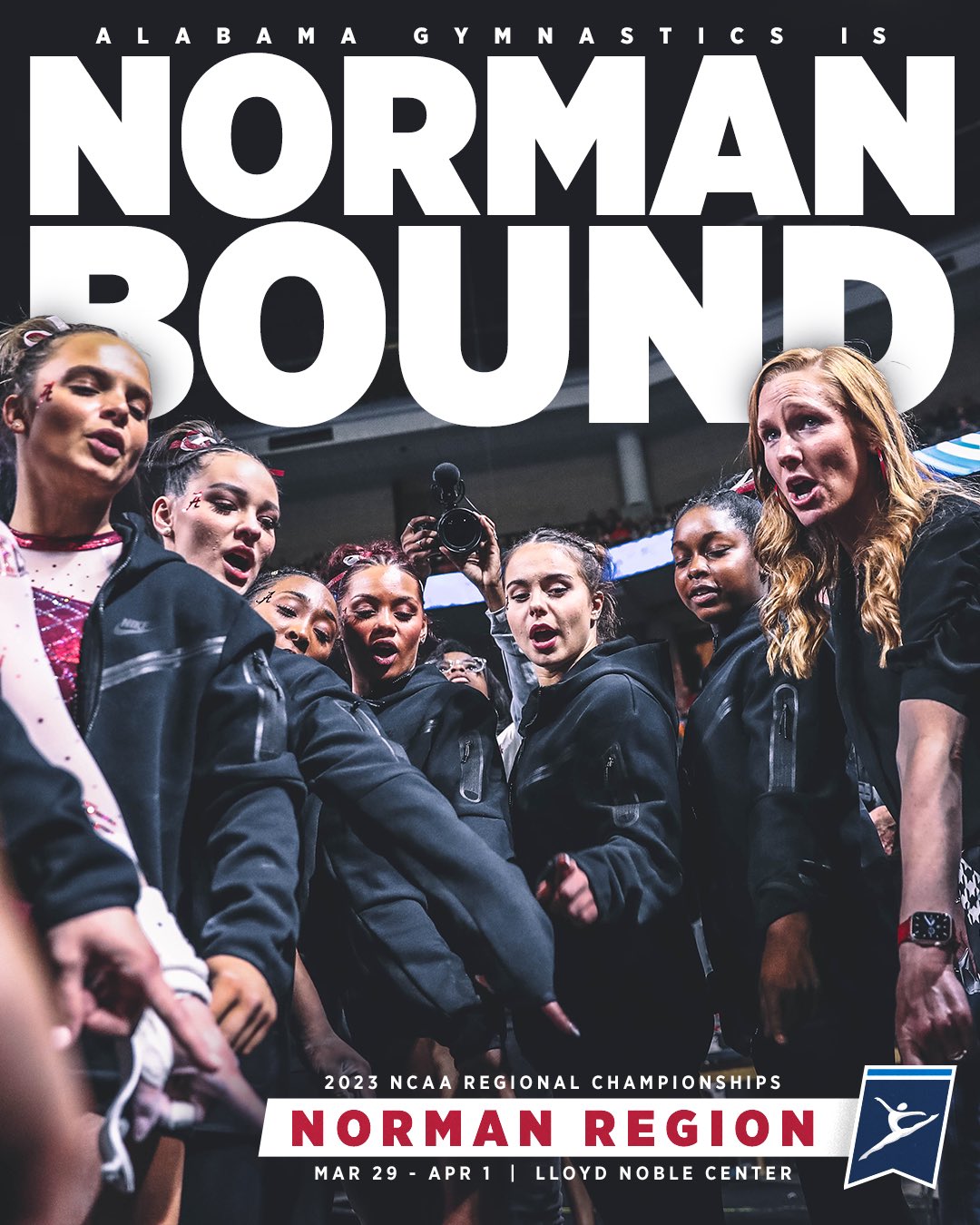 TUSCALOOSA, Ala. – The No. 8 Alabama gymnastics team will travel to Norman, Okla., for the 2023 NCAA Regional Championships, announced Monday during the NCAA Gymnastics Selection Show.