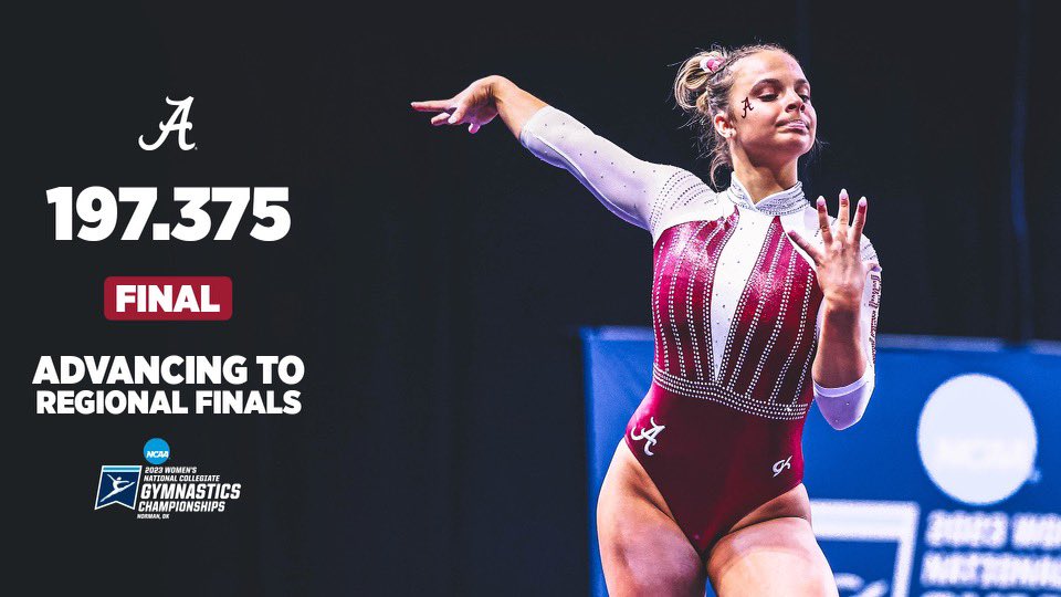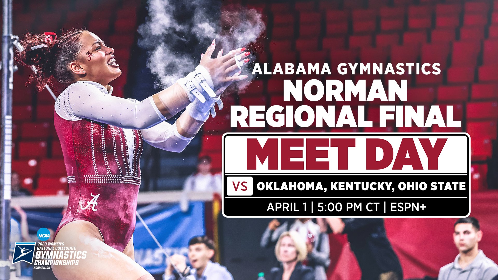 NORMAN, Okla. – The No. 8 Alabama gymnastics team will compete in the semifinal round of the 2023 NCAA Regional Championships on Thursday at 2 p.m. CT in the Lloyd Noble Center on the campus of the University of Oklahoma.