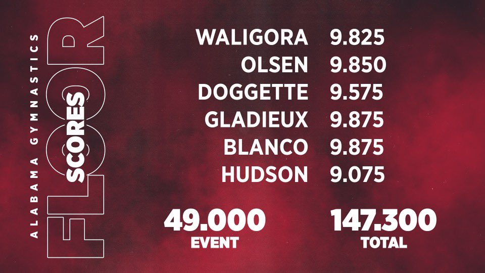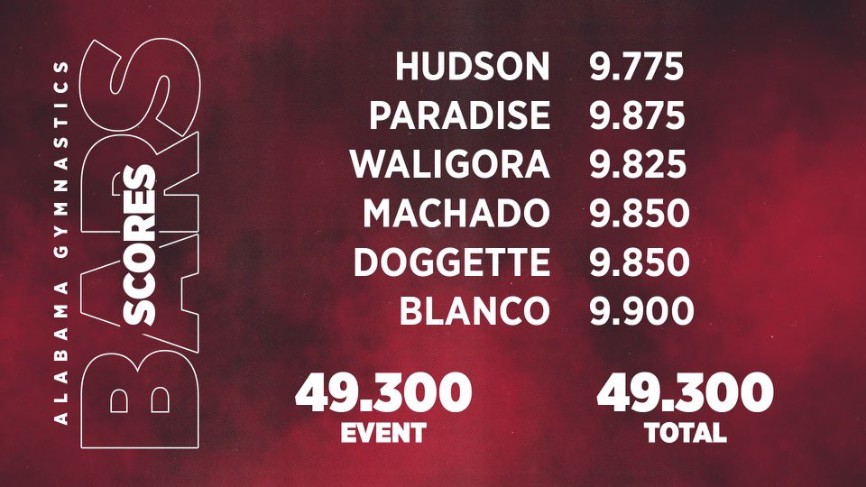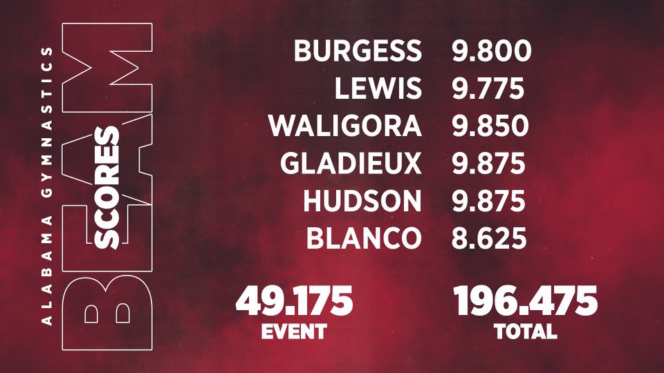 5 of 8 SEC teams that had meets last night had higher scores then Bama