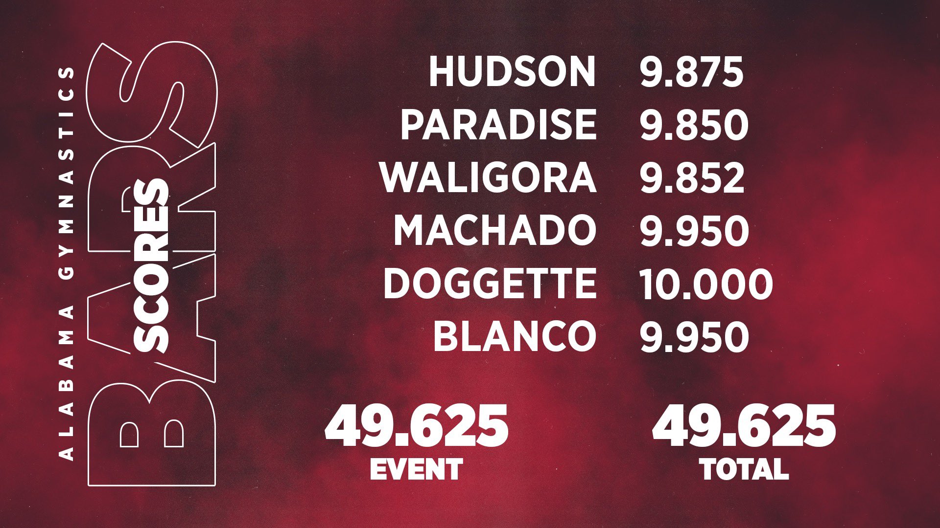 The Crimson Tide hit its season high all-around score of 197.325m only to see No. 10 Kentucky top it for the home win.