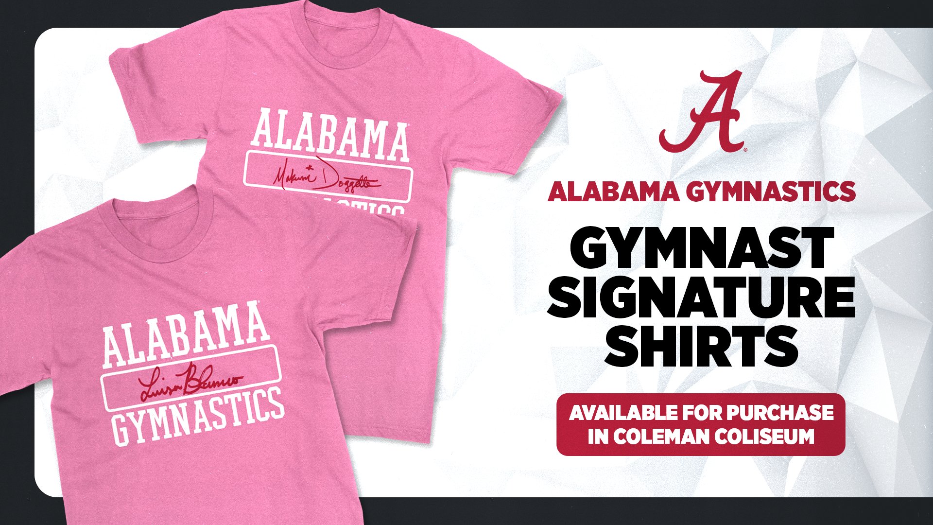 Support @BamaGymnastics & the Power of Pink by purchasing NIL autograph t-shirts at tonight’s meet. Visit the Rank + Rally merchandise stand in Coleman Coliseum to get yours before they sell out!