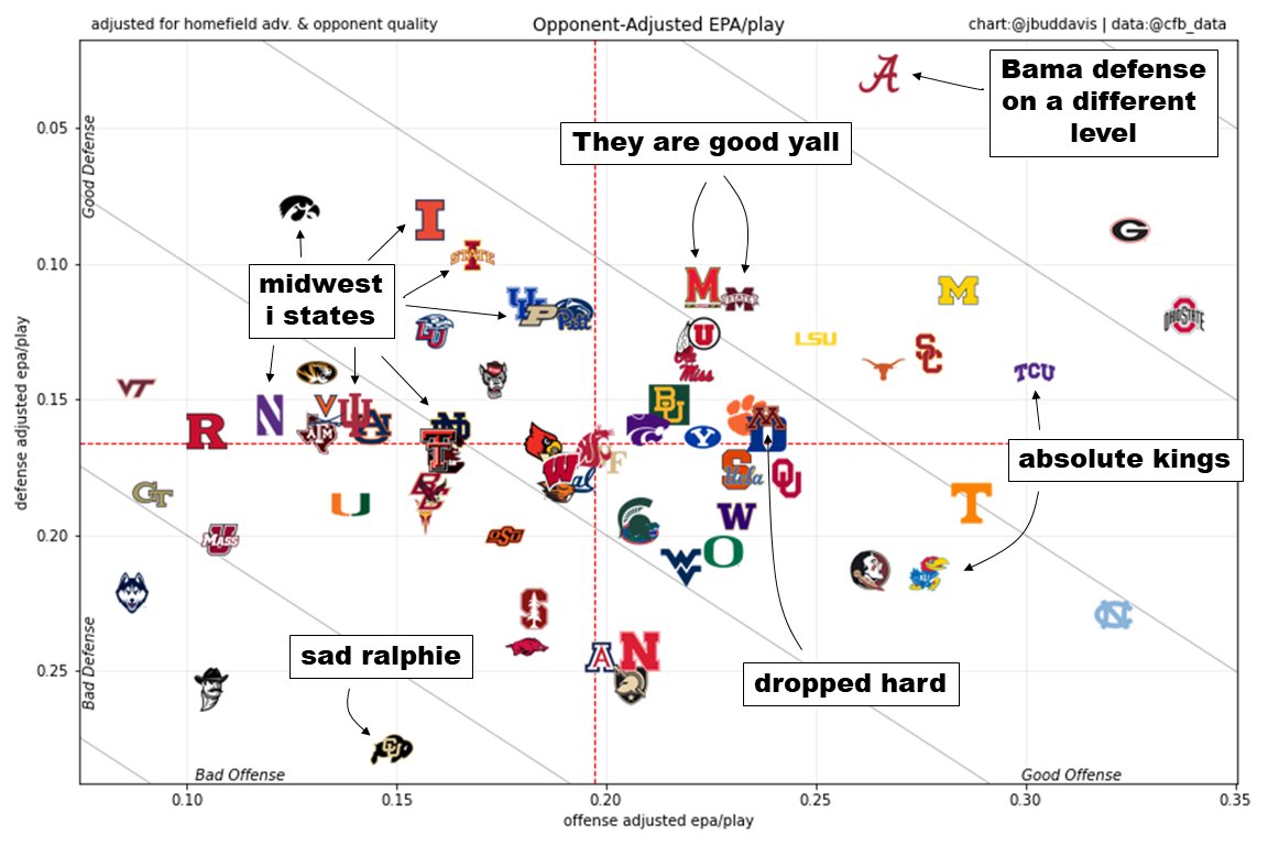Opponent Adjusted EPA/play - Through Week 5 (Twitter)