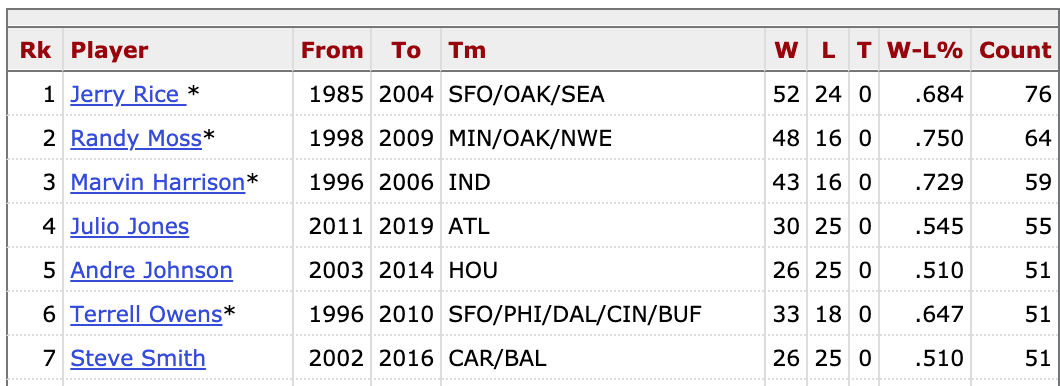 If Julio Jones had a hall of fame QB he would be there with Moss and Rice. This is a Niners fan saying this. It is a shame. At least Larry Fitzgerald got a few years of Kurt Warner.