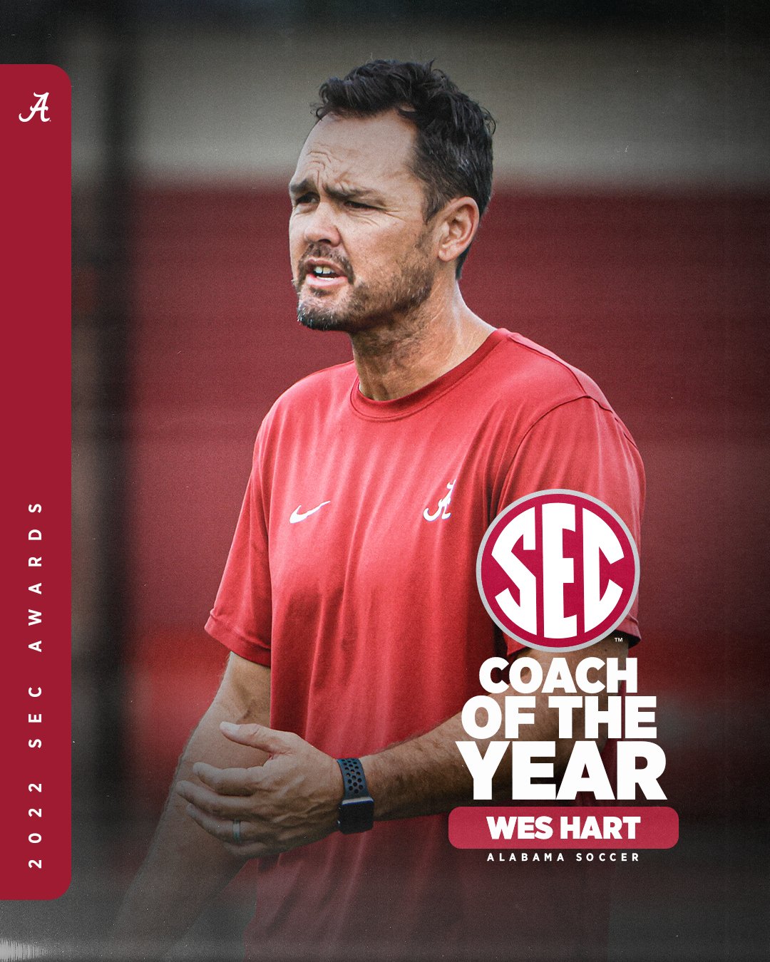 BIRMINGHAM, Ala. – After an historic regular season, the Alabama soccer team won six of seven major Southeastern Conference postseason awards, the league office announced Sunday. Head coach Wes Hart was tabbed Coach of the Year, while Riley Mattingly Parker was named Forward of the Year, Felicia Knox was named Midfielder of the Year, Reyna Reyes was named Defender of the Year and Gianna Paul was named Freshman of the Year. Additionally, Parker was selected as the SEC Scholar-Athlete of the Year.