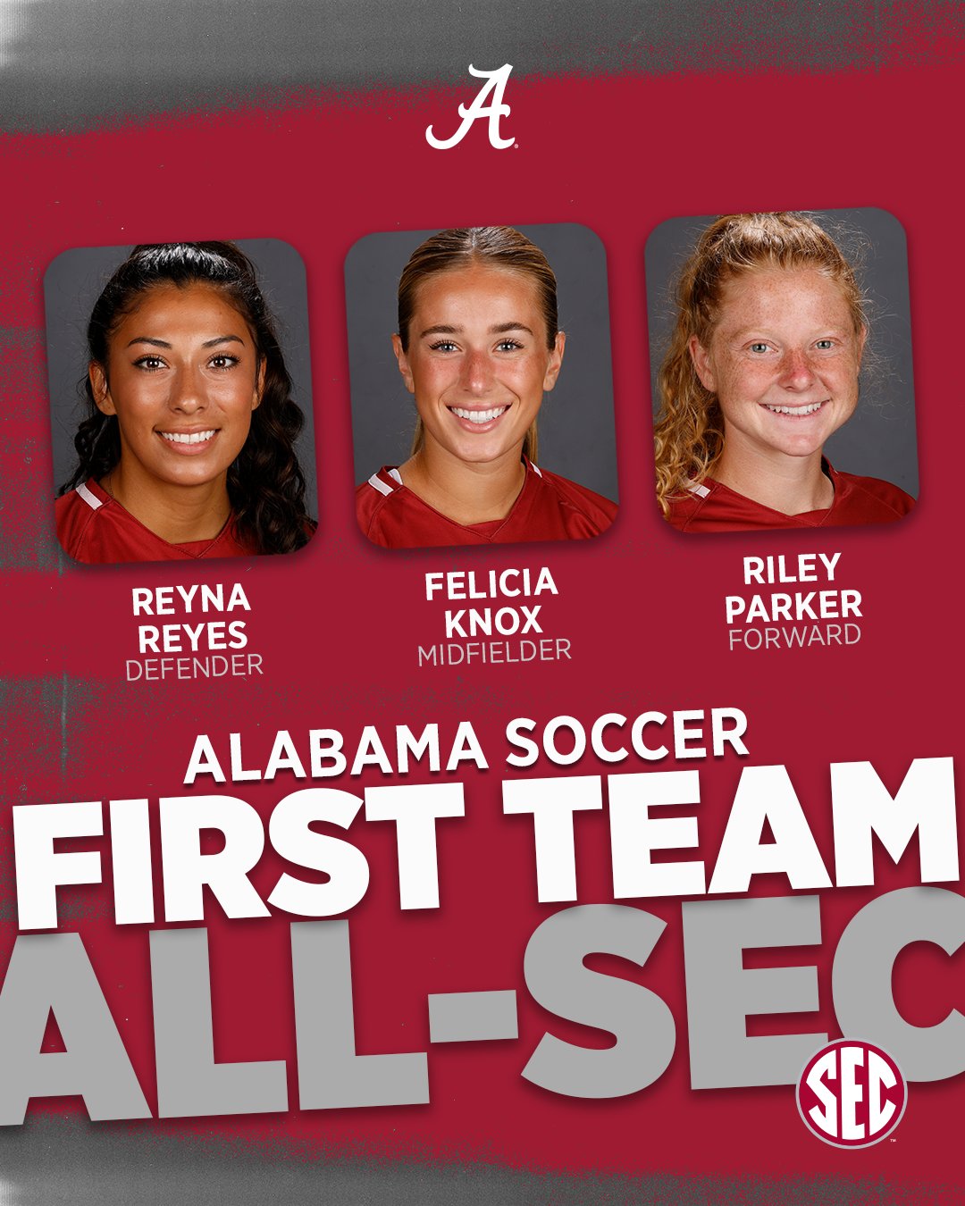 In addition to the major honors, Alabama earned eight all-conference honors. Knox, Parker and Reyes were named First Team All-SEC, while Paul, Riley Tanner and Sasha Pickard were selected to the second team . Paul and Brooke Steere were named to the All-Freshman team.