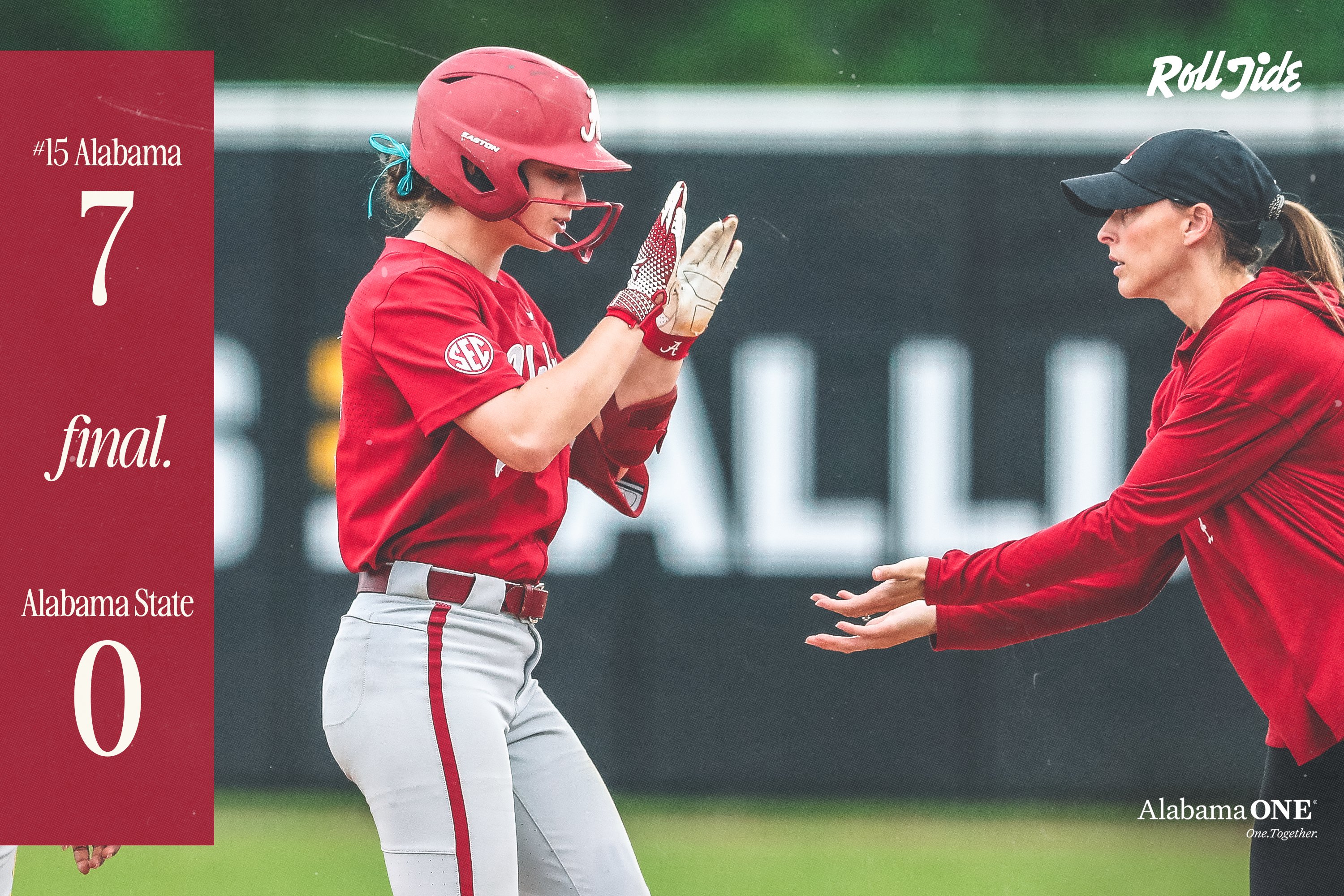 Alabama softball plays its final non-conference game of the regular season Tuesday night, traveling to Montgomery, Ala., to play Alabama State at 5 p.m. CT at the Barbara Williams Softball Complex.