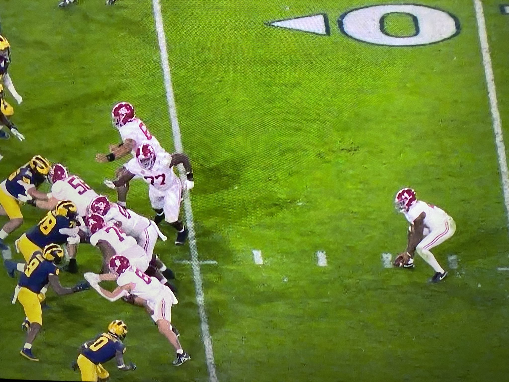 Alabama’s final play was an RPO This ball should’ve gone to the swing pass to the RB Bama had 2 blockers on the 2 DBs and the RB out leveraged the defender playing him man But low snap forced Milroe to abort it and run himself