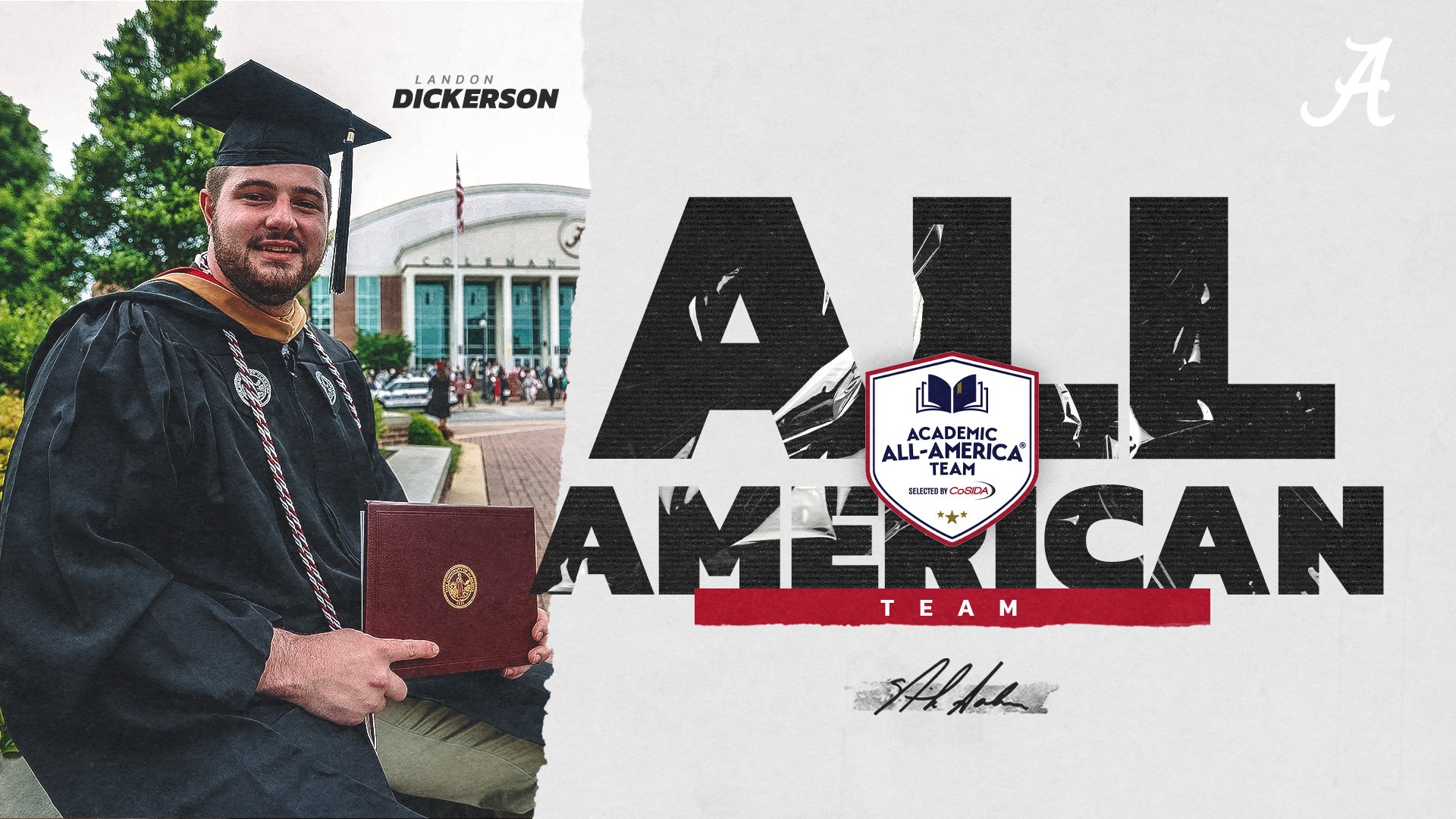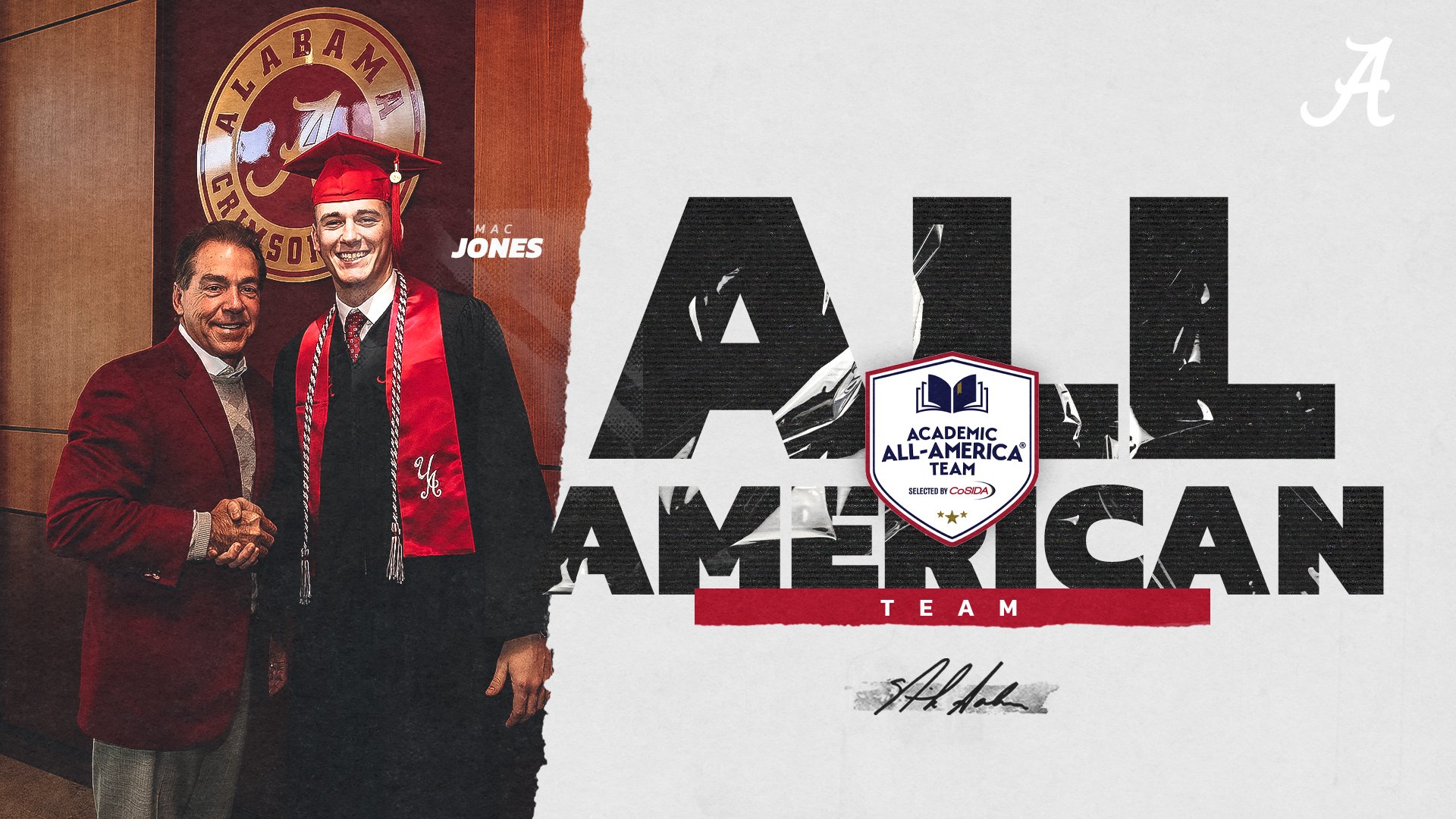 Alabama's Mac Jones and Landon Dickerson were both named to the 2020-21 CoSIDA Academic All-America® Division I Football First Team, while Jones was named the Football Academic All-American of the Year, the College Sports Information Directors of America (CoSIDA) announced Monday.