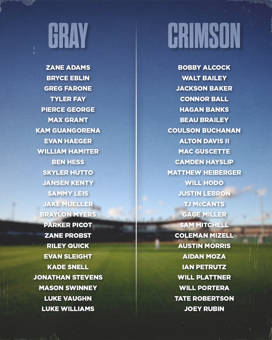Sam Mitchell got the start for Crimson, tossing 3.2 scoreless innings with one punchout for the win. Coulson Buchanan then entered on the back end to record the final three outs for the save. Pierce George was solid for Gray, working 2.2 relief frames with one run allowed and a game-high four strikeouts.