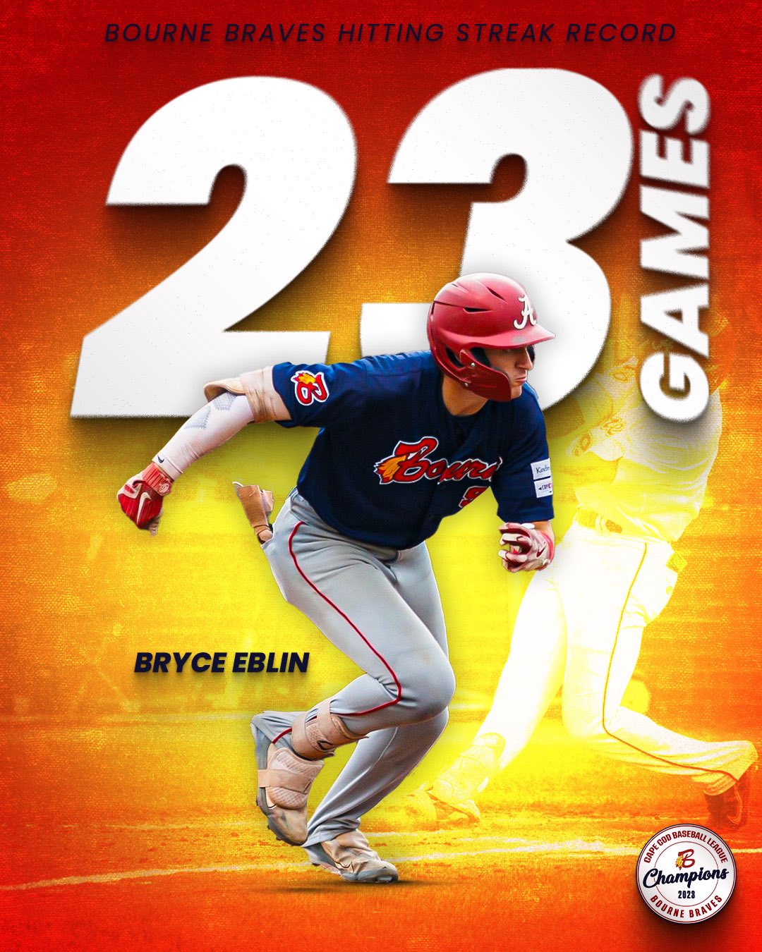 Ladies and gentlemen, your NEW Bourne Braves hitting streak record holder is Bryce Eblin!!!