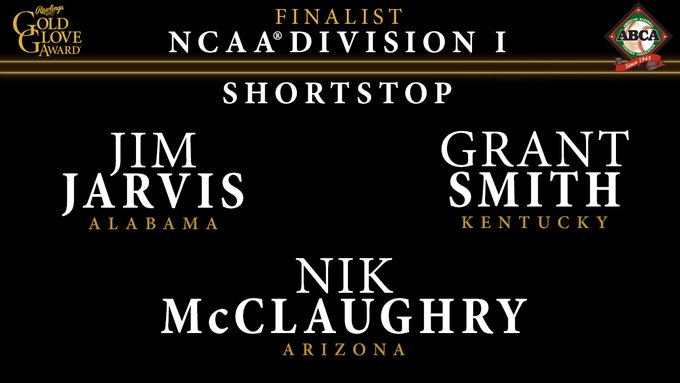 The 2023 Rawlings Division I Gold Glove Award Finalists - Shortstop: Jim Jarvis, Grant Smith, Nik McClaughry
