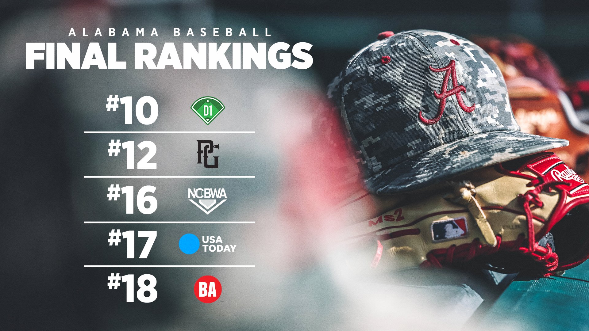#Alabama Baseball finishes the season at No. 10 in the @d1baseball Top-25.