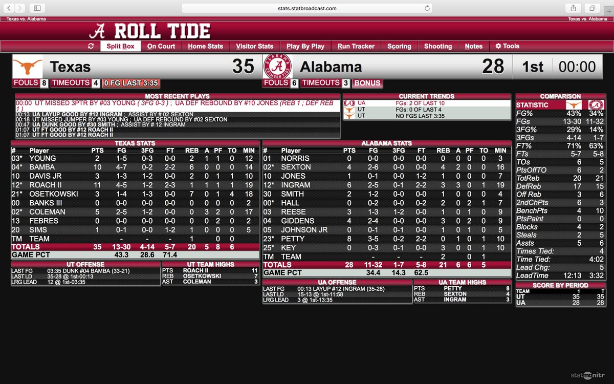 I can hear in my sleep hearing Tom Roberts on the radio saying something like," it's been since the 16 minute mark since Bama has made a basket."