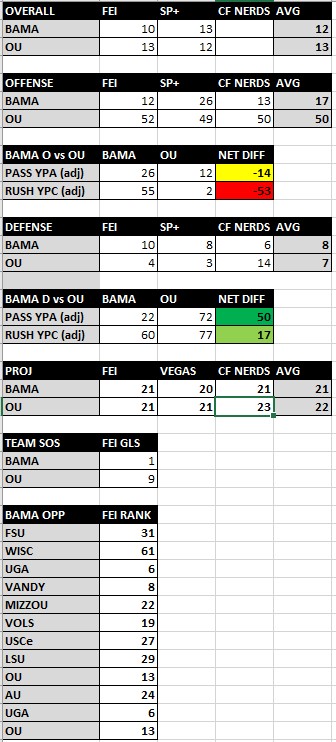 Bama by the Numbers - CFP / OU Edition