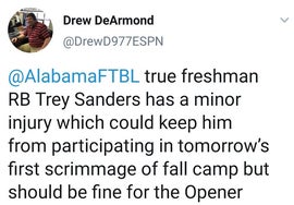 For me, it helps to remember that this happens every year for Bama and every year at campuses across CFB. When pushing a hundred or so athletes at a sport this fast and violent, nearly every practice will result in a nick or issue with at least a guy or two. And then add to that how profitable it is to quickly publish any possible piece of info about Alabama, and it's easy to see how all this seems like a lot when every little thing is reported. But it's actually just normal.