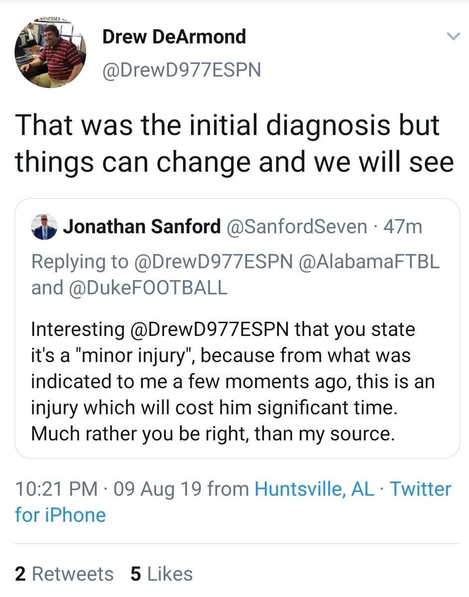 For me, it helps to remember that this happens every year for Bama and every year at campuses across CFB. When pushing a hundred or so athletes at a sport this fast and violent, nearly every practice will result in a nick or issue with at least a guy or two. And then add to that how profitable it is to quickly publish any possible piece of info about Alabama, and it's easy to see how all this seems like a lot when every little thing is reported. But it's actually just normal.