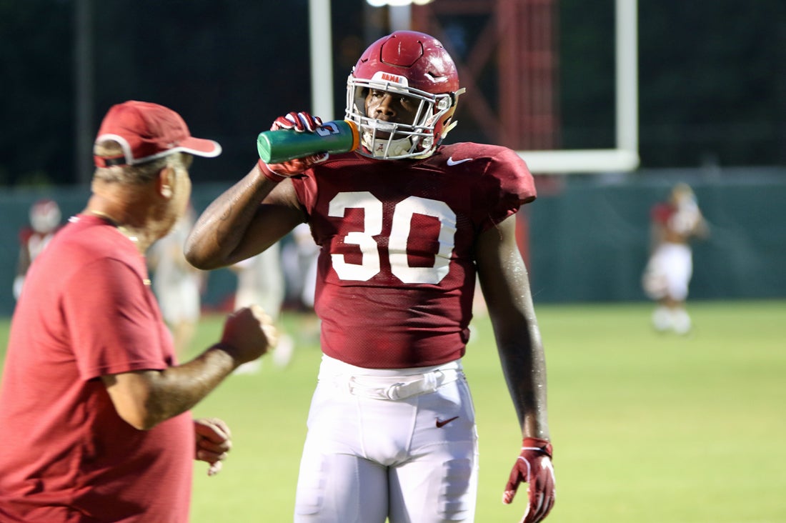Injuries have been prevalent during the Tide’s fall camp. Sanders and inside linebacker Joshua McMillon, who injured his knee last weekend, are both out indefinitely, and several other players have either missed practice time or appeared limited.