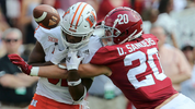 Interior play is up and down but not nearly the issue that Owens is. Dalcourt is playing very sound football but can get overwhelmed by power sometimes. The guards are very similar to one another. They both really moved players around when engaged, but struggled to move their feet to get to the assignment quick enough to actually get engaged in the first place. Not an uncommon problem for guards, and I would expect improvement as time goes on.